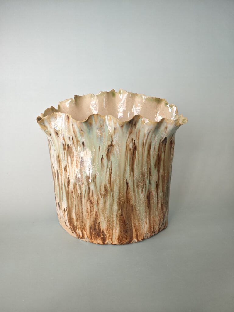 Je travaille principalement le grès, pour sa robustesse, sa matière naturelle et son infinie possibilité d’expression.