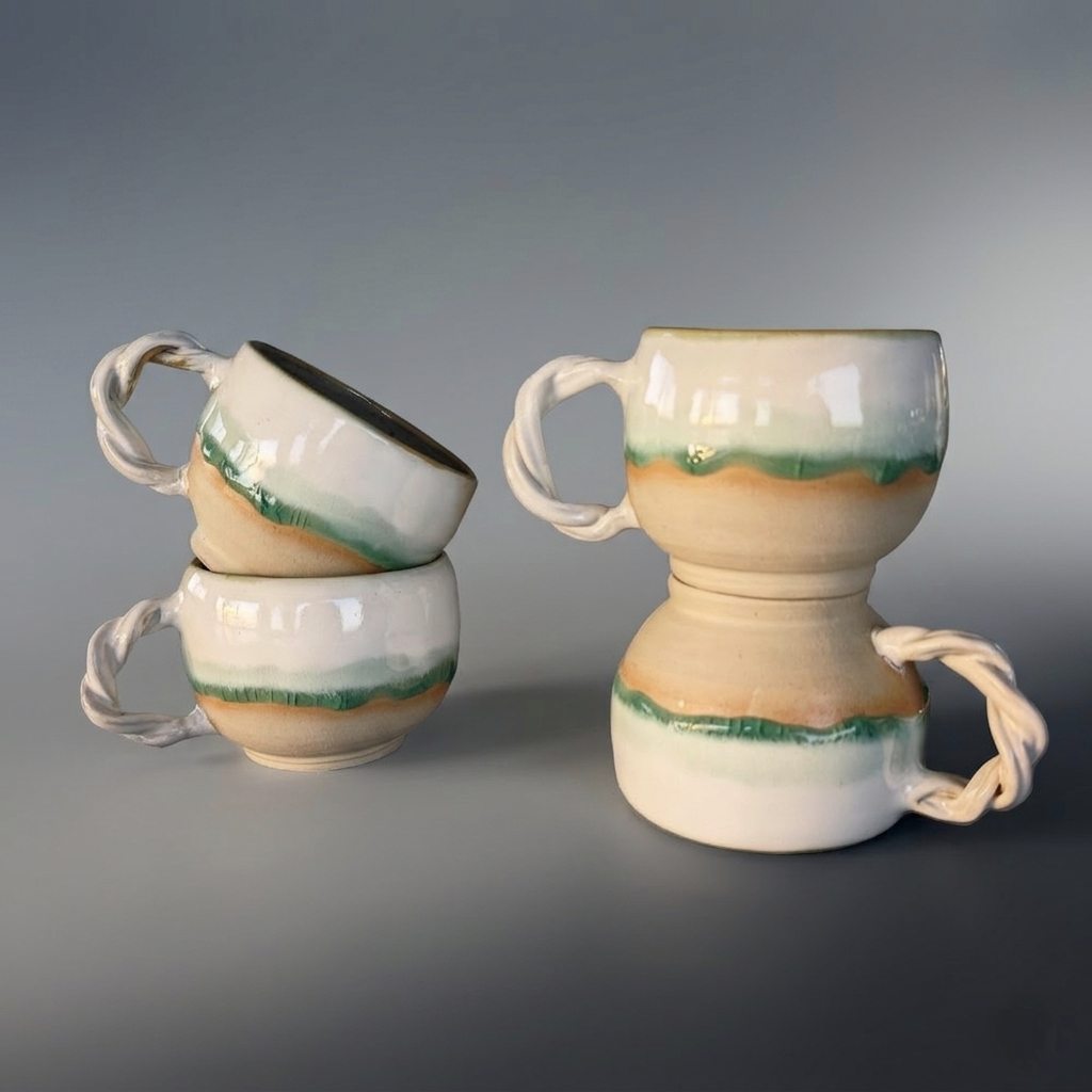 Chaque pièce que je façonne naît du contact avec la matière et de l’envie de jouer avec les couleurs. Entre le modelage et le tournage, je laisse le geste guider la forme et les nuances s’exprimer.